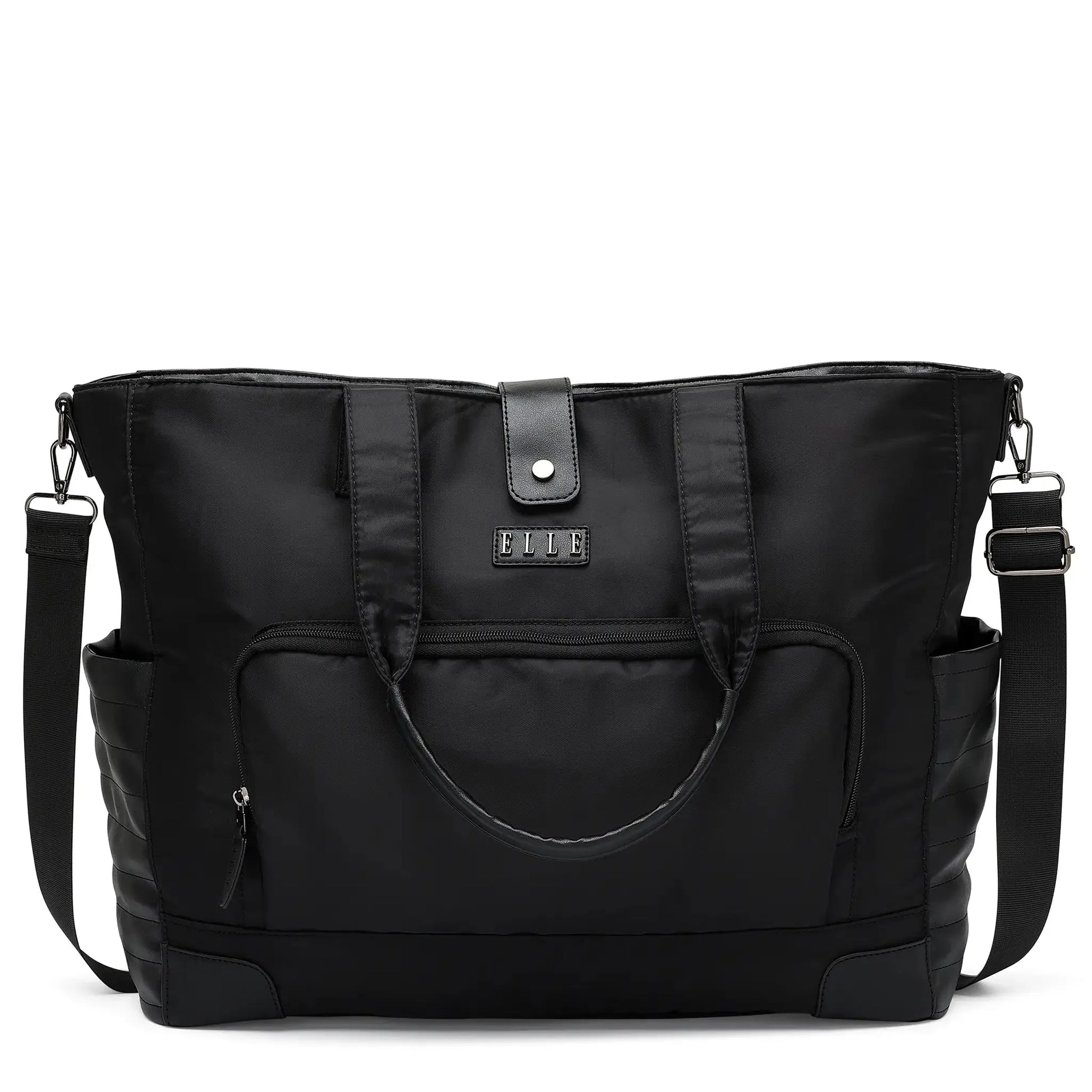 Embark on your next adventure with the ELLE Voyage weekender bag, the perfect blend of style and functionality for the modern traveler. Crafted from high-quality lightweight fabric with thickened vegan leather accents, this bag offers a spacious interior and a sleek design that complements any outfit. Whether you're heading to the gym, yoga class, or a weekend getaway, the Voyage weekender bag ensures you travel in comfort and style.