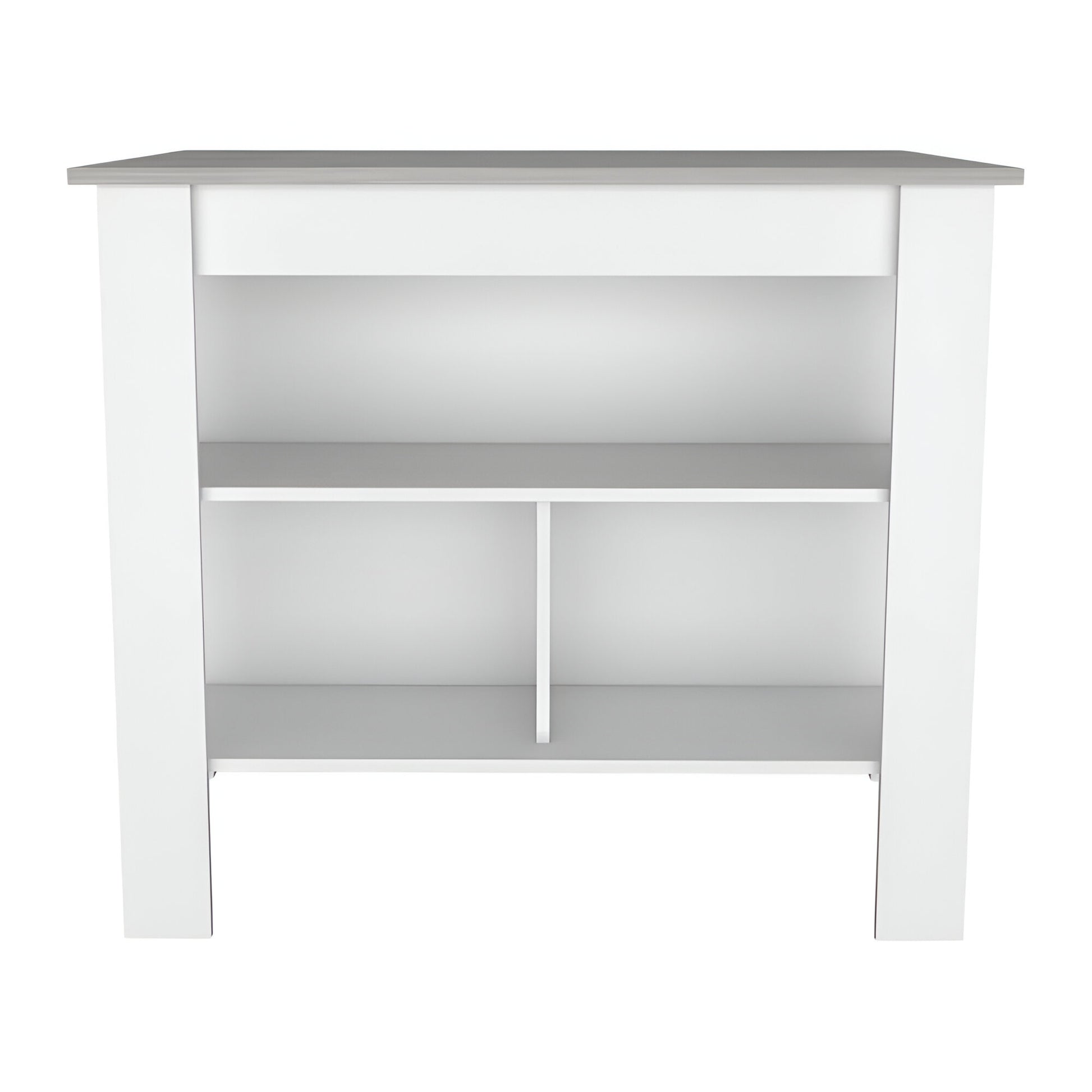 This white and gray 41-inch kitchen island with storage will add a cohesive look to the kitchen while also providing additional space and functionality. Made of a combination of durable manufactured wood this rectangular island is a premium organizing solution that provides extra storage and counter space in your kitchen. This unit features purposeful distressing for a slightly rustic and vintage design styling. Enhance the beauty and functionality of your kitchen space with this multi-purpose kitchen island. 27.5-inch h x 40.5-inch w x 27.5-inch d.