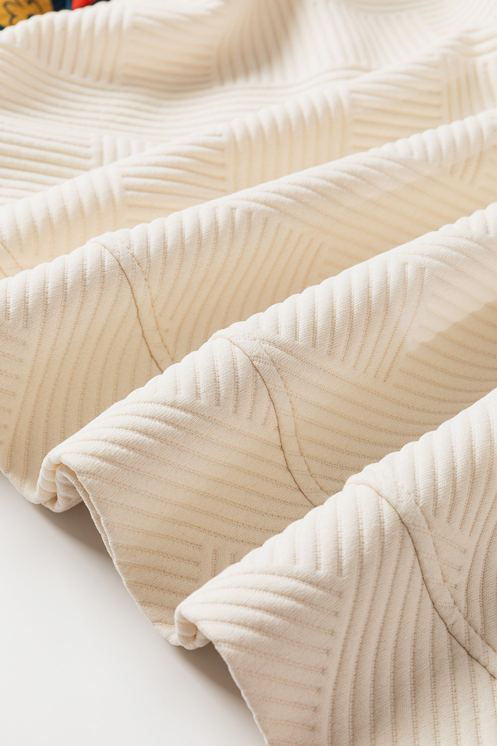 SKU:WHITE-FLORAL-PATCHWORK-SLEEVE-TEXTURED-PLUS-SIZE-PULLOVER-E4F7D2