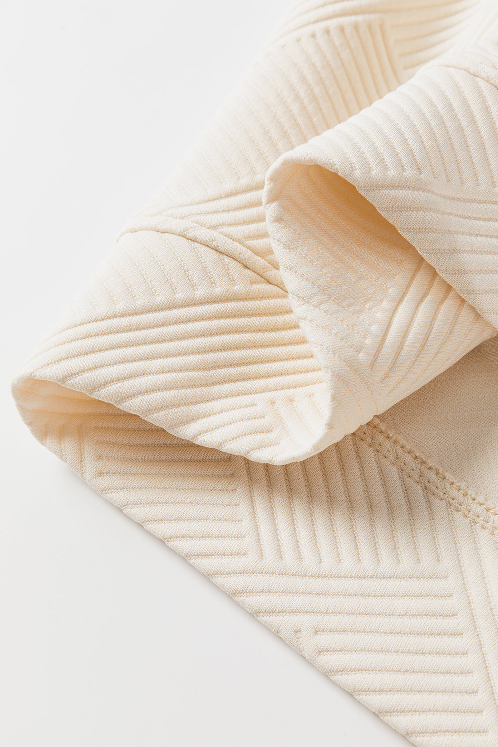 White Floral Patchwork Sleeve Textured Plus Size Pullover Top